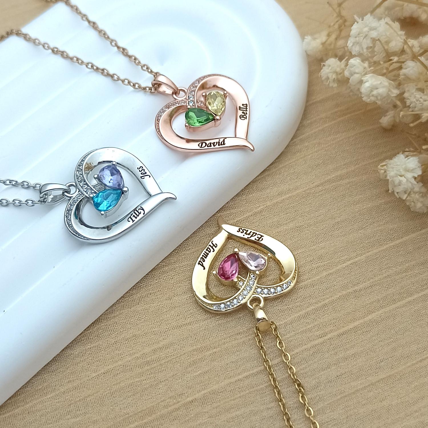 Personalized Birthstone Necklace • Heart Birthstone Necklace • Heart Necklace • Custom Name Necklace • Gifts for Mom • Gifts for Her