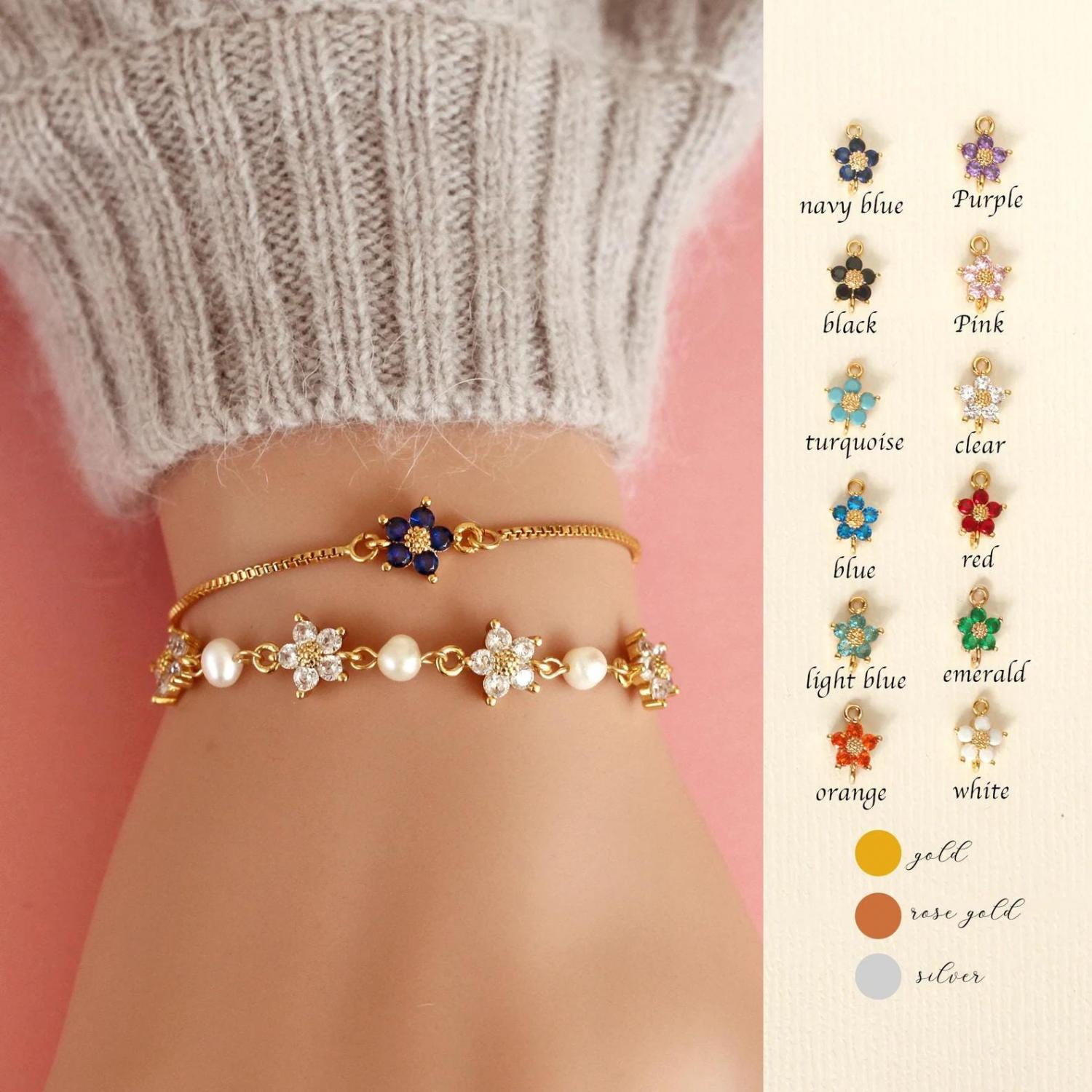 personalized bridesmaid gift, freshwater pearl bracelet flower girl bracelet, wedding gift, handmade jewelry Christmas gift for her, bridal party - The flower size: 8*8mm. The normal length: 1 flower no pearl length is 8.7 inches, 1 flower 1 pearl length is 8.9 inches, 2 flower 1 pearl length is 9.4 inches 3 flower 2 pearl length is 10 inches, 4 flower 3 pearl length is 9.5 inches. If you want other length, please let me know, I can change the length. ★★ MATCHING ITEMS ★★ Be sure to check out our other Flower girl Gifts below: Check out our other Bridesmaid Gifts below: Jewelry tarnished over time by everyday wearing or bathing is not returnable, refundable or replaceable. All plated materials are not solid precious metals and are susceptible to oxidation. Your jewelry is a special handmade piece so please take care accordingly and enjoy! Handmade time: 1-3 days( time from payment to shipment) Payment: Paypal or Credit Card accepted Each piece is handmade by Jay or Judy.
