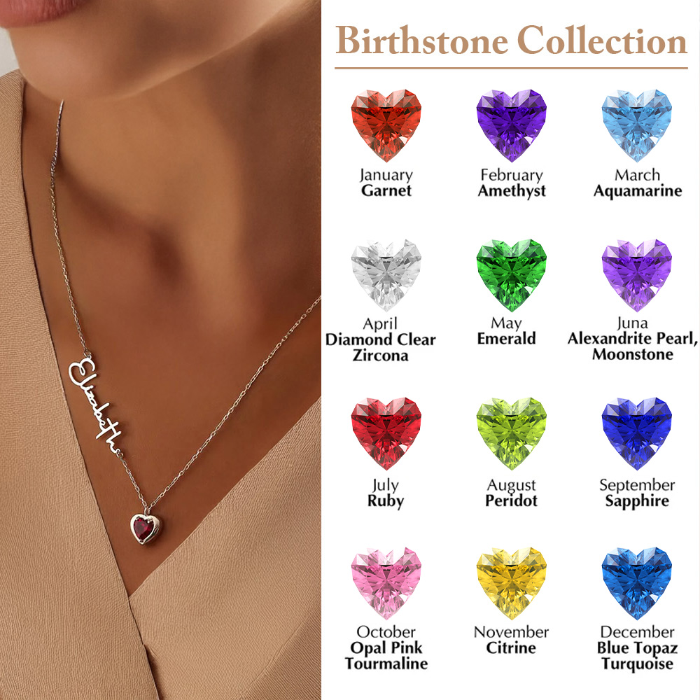 | Style | Personalized Sideway Name Necklace with Heart Birthstone |