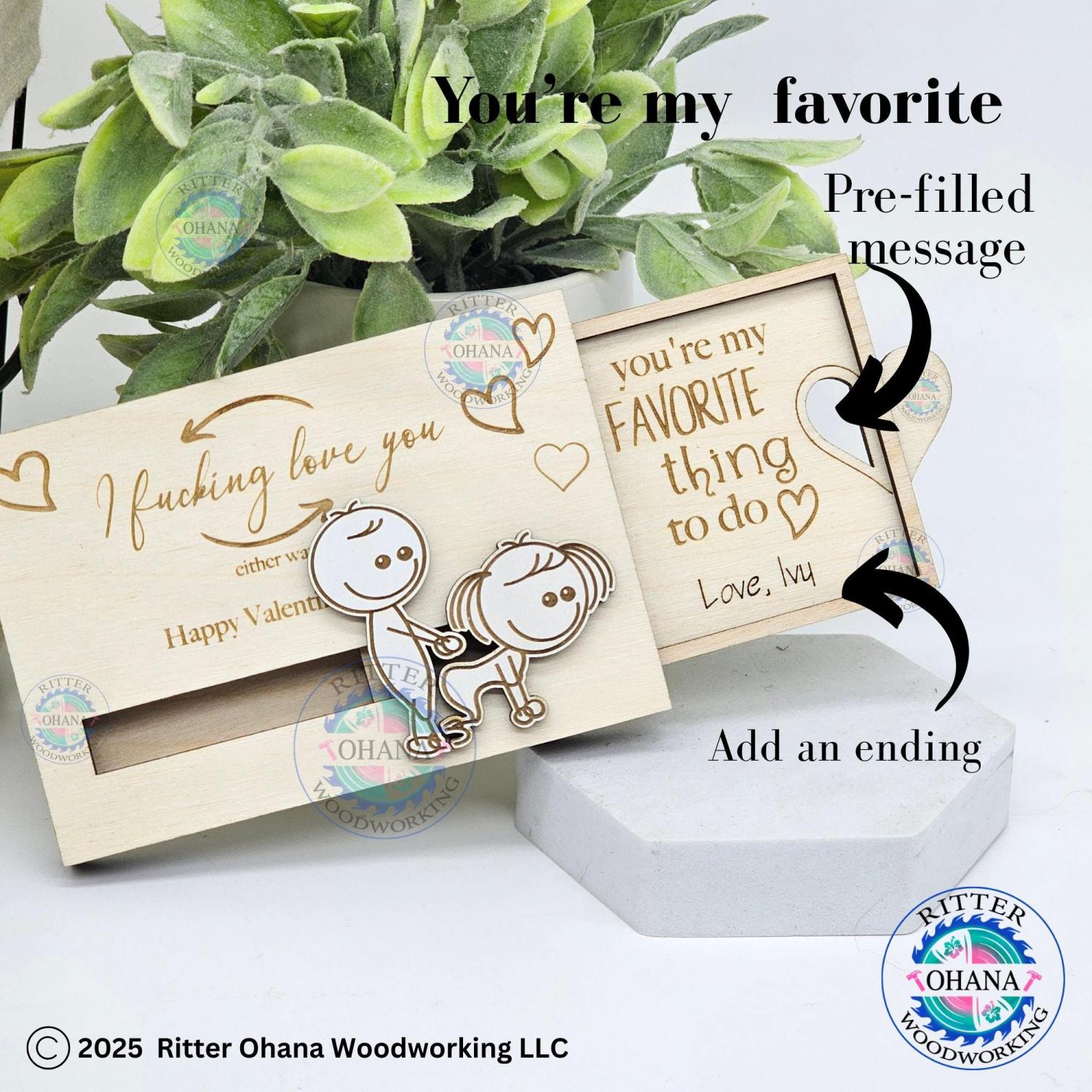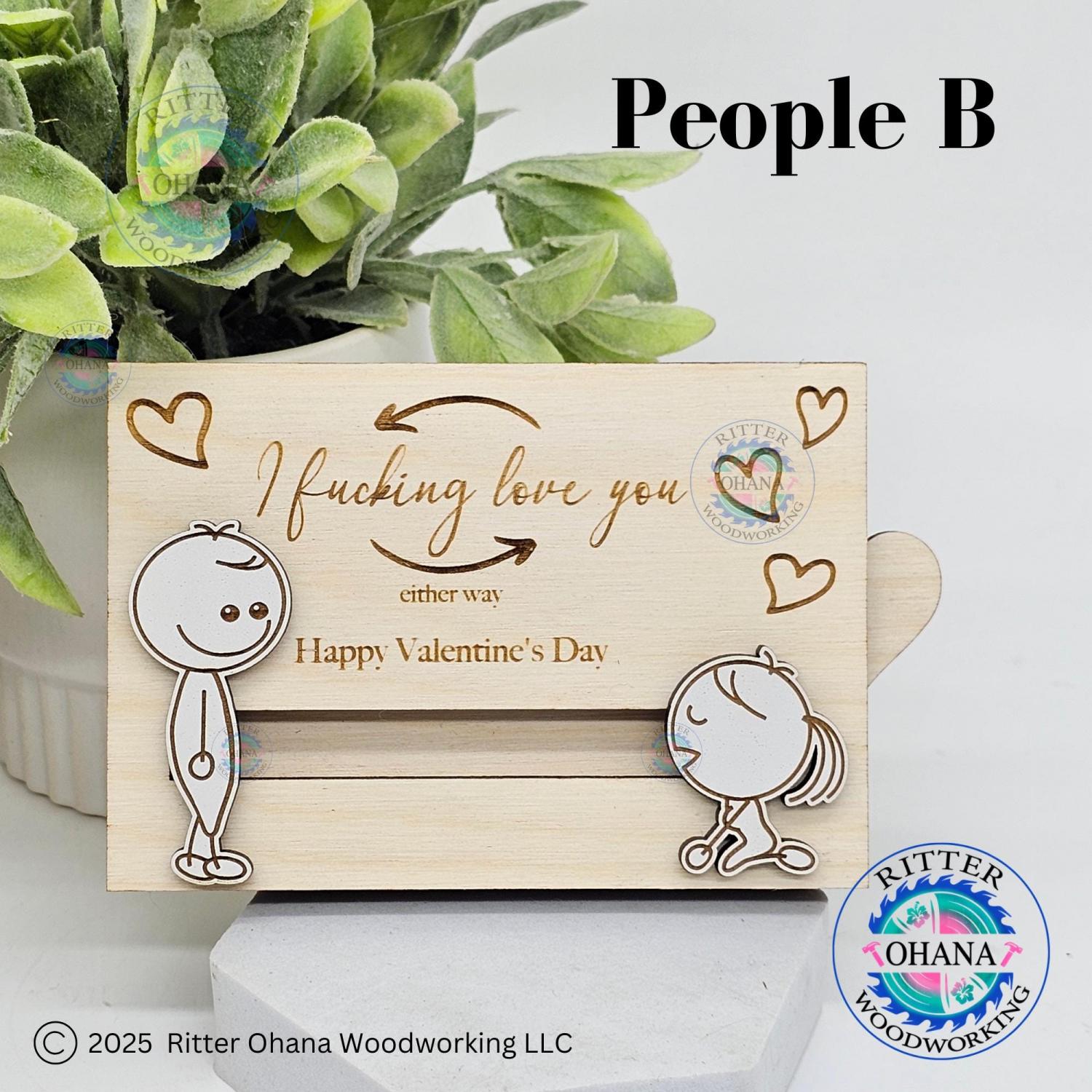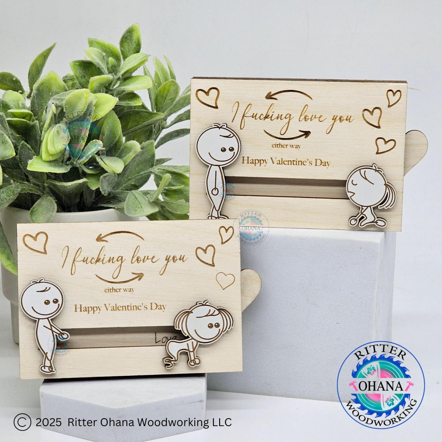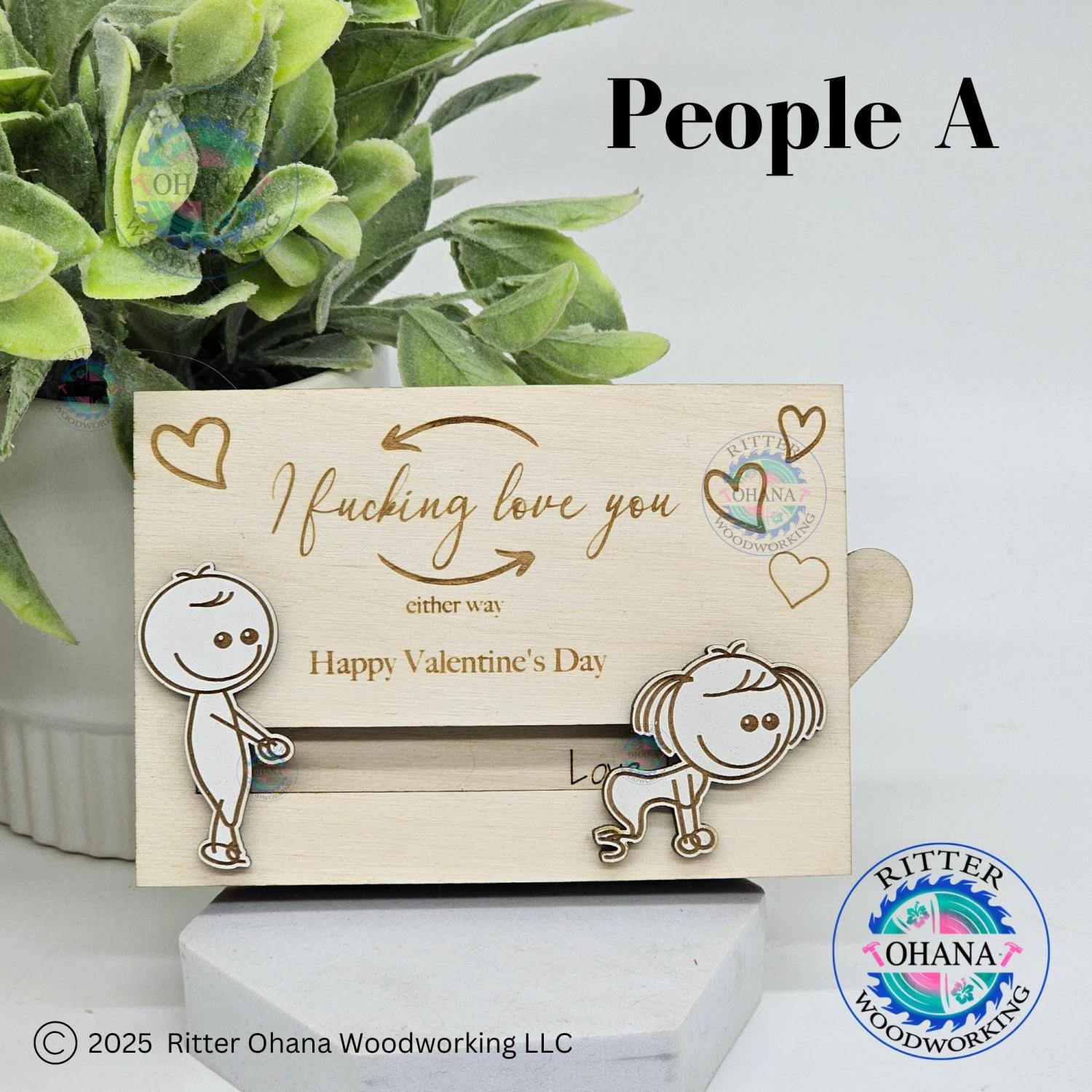This "inappropriate" Valentine's Day gift card holder adds a touch of playfulness to your Valentine's Day gift with its unique design. This fun couple gift includes two sliding line drawing figures depicting a whimsical scene.